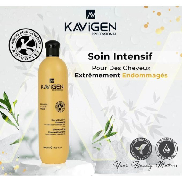Le shampooing Kavigen Shampoing Reconstructeur agit comme un film protecteur pour les cheveux sensibilisés.
